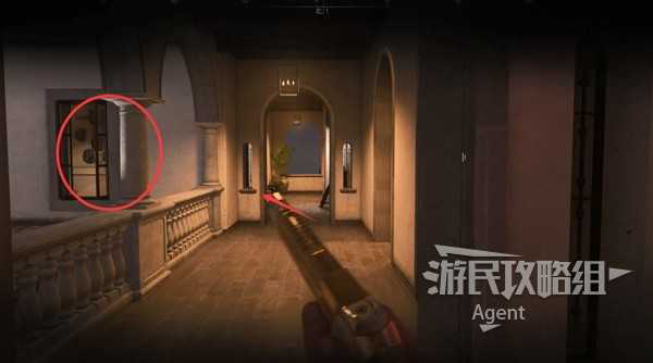 经过一楼泳池,院子里有条路可以潜入二楼阳台。