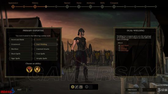 欧美系列的RPG游戏往往以其丰富的世界观框架吸引玩家,比起压榨玩家硬件性能的3A大作,DND类游戏中各种详细的设定相信各位老玩家门也会相当熟悉。在正式进入游戏后,玩家经过短暂的捏人之后开始选择角色的出身。在《暴君》中,玩家可以任意选择两种风格进行搭配,诸如法杖加重剑,弓箭与肉搏等平常难以目睹的搭配在这里可以自由融合。随后的初始属性和技能也都给了玩家在游戏的初始阶段更高的自定义空间。