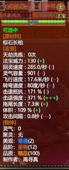 不讨论法宝属性参数(法宝灵气容量>速度>回灵>体积>威力>拐弯>攻击间隔),以下法宝都是由该名小人参与炼制。