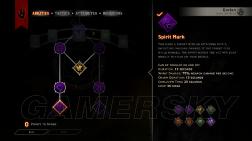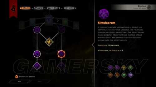 如果你被击昏,你所控制的灵体会附身你的形体短暂为你作战。灵体自梦境中直接取得魔法所以施法不耗任何法力,在被附身其间你无法被任何方式回复。