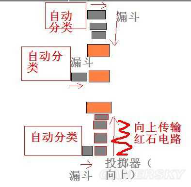 我又想了另一个方法,中间和最下两层漏斗同时向右传送,不知道下这个可行不,貌似可行,但是建好后整体占用体积貌似会很大。