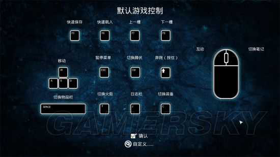 装备在场景中取得,用于解迷,左下方为选项栏,E为使用道具,AD为左右选择道具,F查看道具,Q为奖杯,右键为转换。