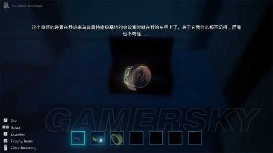 下方为装备物品栏,最多可带7个道具。中间会显示物品的放大图,同时有文字说明,对解谜有帮助作用。