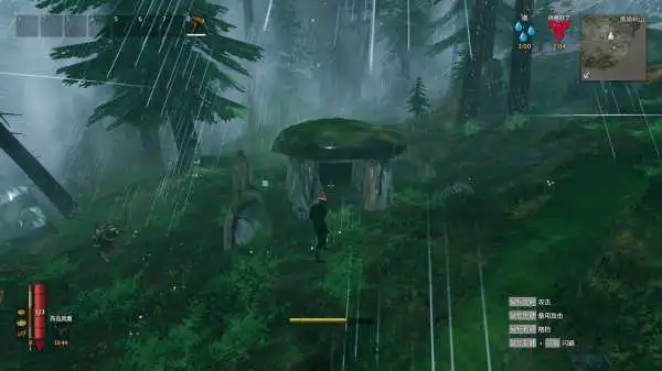与猪搏斗,获得猪肉。 肉是前期能加最多体力的食物,搭个烤架烤了就能吃