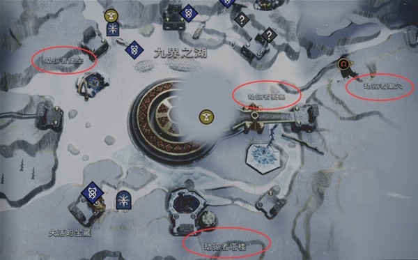 分别在地图上的[米德加尔特-劫掠者塔楼]、[米德加尔特-劫掠者巢穴]、[米德加尔特-劫掠者堡垒]、[米德加尔特-劫掠者要塞]