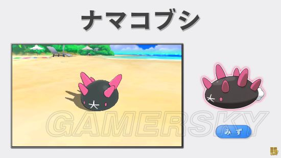 拳头海参「ナマコブシ」,属性水,特性内脏冒出,在视频中被地方击倒之后会对该精灵造成反震伤害。