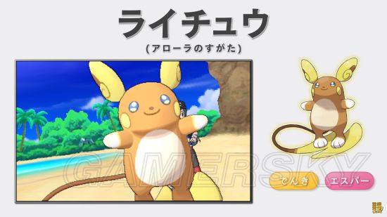 雷丘(奥罗拉形态),属性电+超能力,在进化前的皮卡丘与关东形态一样。