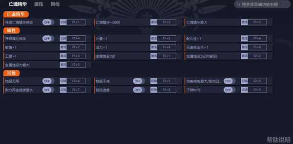 1.开启亡魂精华修改:开启后打开菜单,物品栏修改。