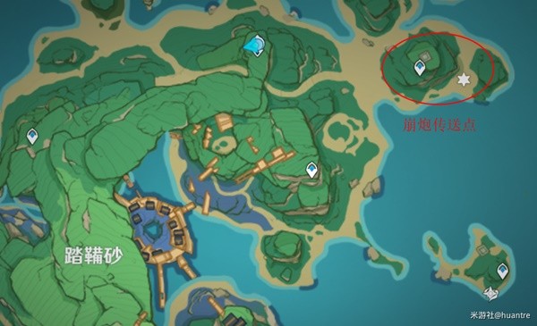传送锚点出来,右后方崩炮附近(3处调查点)。