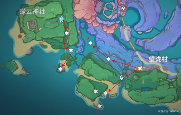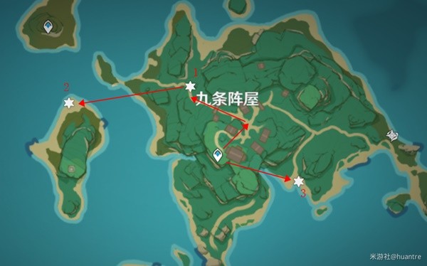 《原神》稻妻地图中分布着许多每天都会刷新的圣遗物调查点,这些调查点都在哪里呢?下面请看玩家“huantre”带来的《原神》稻妻狗粮收集路线规划,一起看看吧。