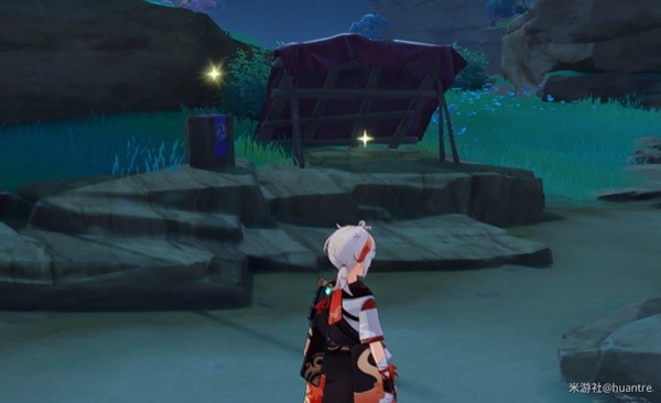 传送锚点出来,正前方有一个帐篷(2处调查点),附近有一个*床(调查点)。