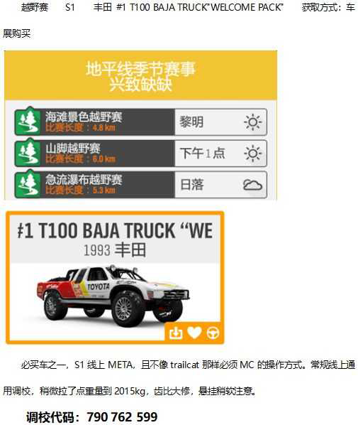 手柄玩家,个人TCR和ABS关,BP普遍调高,线刹,键盘玩家务必打开ABS。调校风格稳定轨道,部分线上车型通用调校,劲敌玩家慎用。如有特殊情况会进行说明。齿比如果有调整会作出说明,如有较大变动,MC玩家如果已经习惯原厂档位慎用。