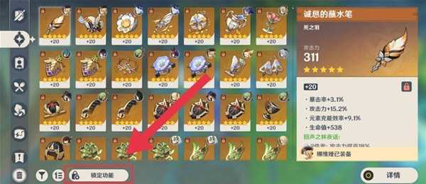 锁定功能就在背包-圣遗物左下角处,快去设置吧。