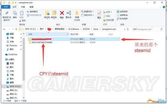 SteamID就是你存档文件上一级文件夹的名字,每一个人的id都不同。需要自己修改。