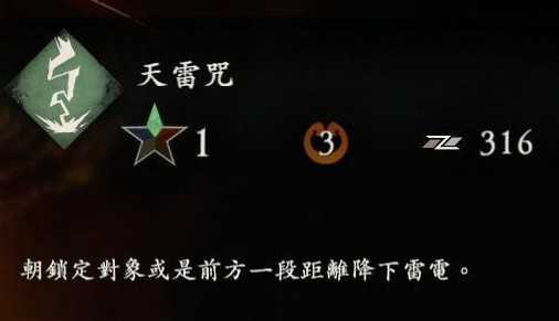 特性:放置跟再次使用都需消耗气势,二段无距离限制,若因障碍物没有打到树枝则可以重新放电。放出的电跟打到树之后的雷击是两段属性跟伤害,运用的好可以打中两次,