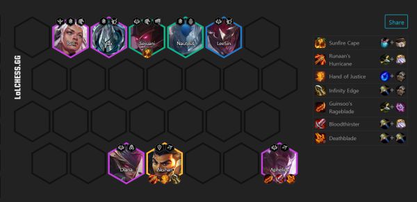 黑夜游侠绝对的版本T0阵容,原因无他就是当前版本阿克尚直接太强了,只要有2星阿克尚就能够吃分,甚至8人口吃鸡也是非常简单的!