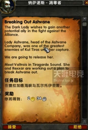 希女王希望多集结一些联盟敌对力量,然后一起对付联盟。艾什凡就是一个很好的选择。于是我们计划去托尔达贡劫狱营救艾什凡,先去找雷克萨和瓦尔托伊作准备工作。