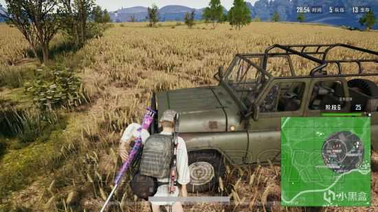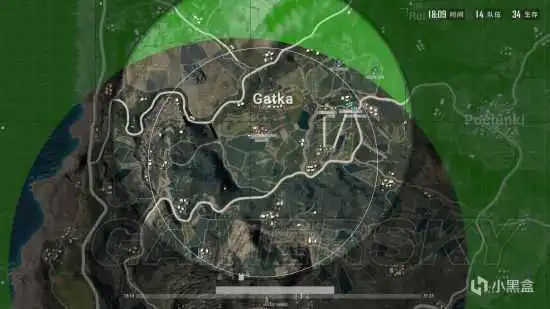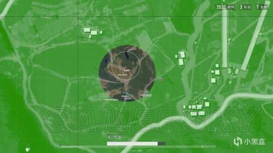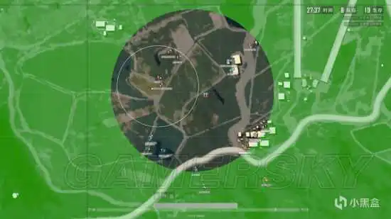 由于平原圈高低不平,而且可能存在伏地魔,所以这个时候我开车吸引注意力拉到圈外,将我们队伍的视野补全,这个时候整个安全区除了趴着的人,我们已经没有视野盲区了。