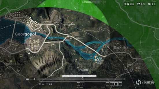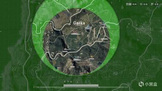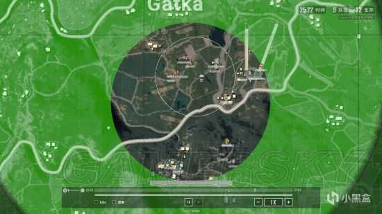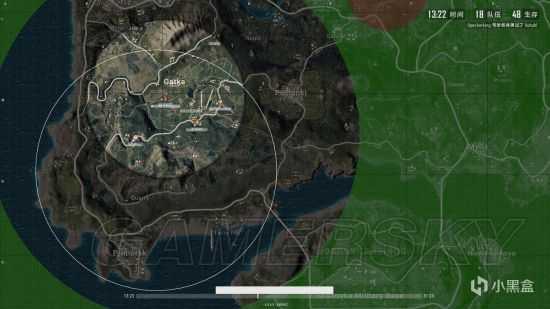 第五个圈刷新过后大部分都已经在平原上了,我们所处的位置已经在是平原上高坡,整个圈的上半部分都在我们的视野范围之内,我们知道圈内房区内有一队,然后我们分兵22,对安全区下半部分进行观察。