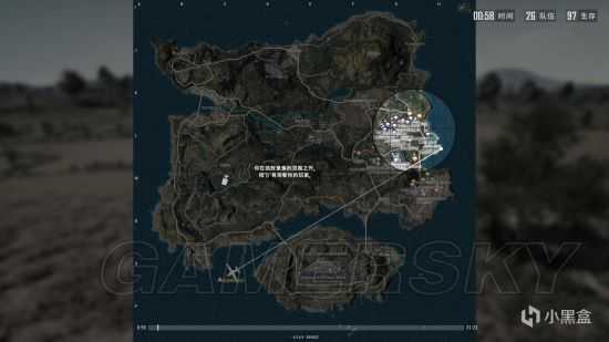 此局航线是3点到7点方向,由于我们是固定跳点是Y城,在跳伞时发现去Y城队伍较多,所以我们选择原地分散打野,在跳伞的时候观察四周车辆情况,方便一会儿转移。