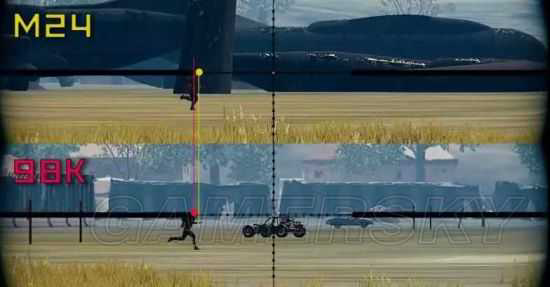 可以看出M24的枪口略低于98k(ps.栓狙在200米内都不需要抬枪口)。