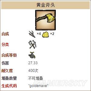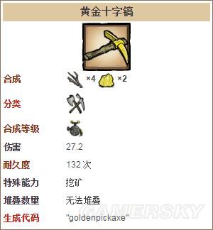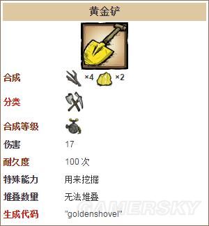 所有工具都有一定的耐久度(剃刀除外),耐久度决定一个工具在损坏之前可以使用的次数。黄金斧头、黄金铲子、和黄金十字镐是较进阶的工具,相较于初阶的工具,拥有4倍的耐久度。