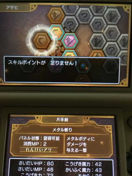这个时候就只有靠技能了,片手有个很好的打金属史莱姆的技能,不用问说大家都知道:金属斩。恰好这个技能在片手的分支里面: