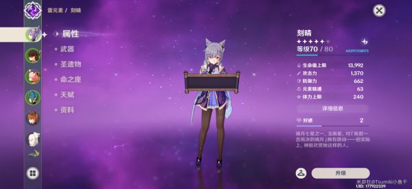 刻晴E一下4140,大招第一段和最后一段2k左右,中间每段大概268~500左右跳动 没记错的话是8段,不暴击268*8(2144)