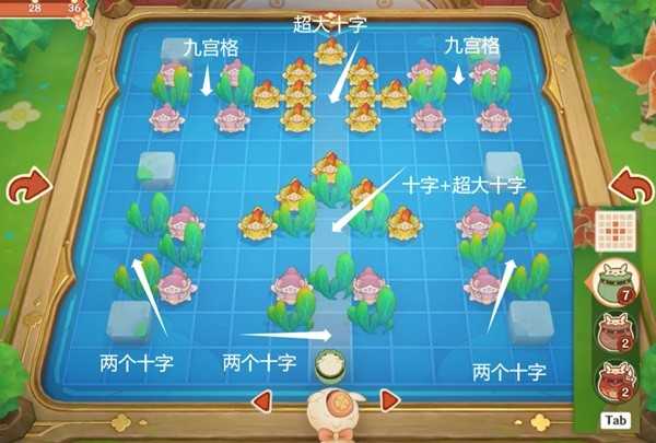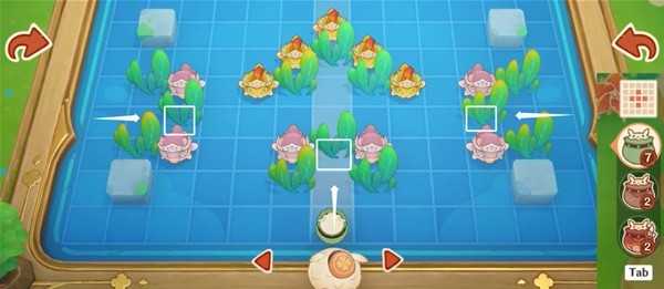 先清除水草,之后同样在箭头所指那一列发射蹦蹦