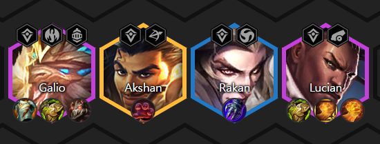 加里奥:狂徒+泰坦+石像鬼加里奥的肉装随便给,狂徒、泰坦、石像鬼、龙牙、冰心、复活甲等等有什么给什么,加里奥就是在前排一定要肉起来有多肉就要多肉。