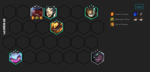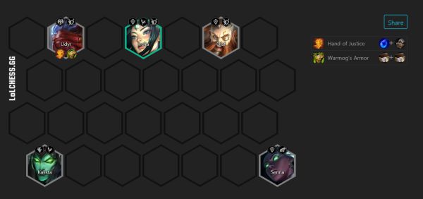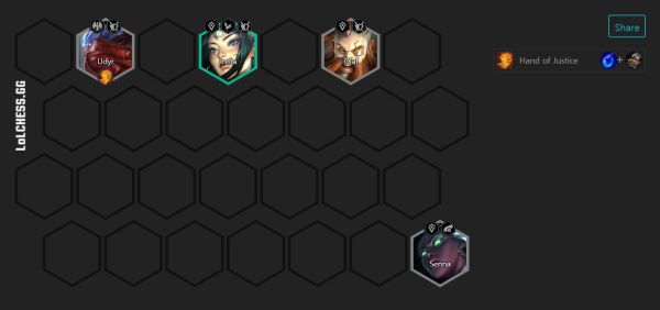 3-2拉6人口,6人口乌迪尔、小炮、凯南、赛娜、刀妹、派克6人口用小炮替代卡莉斯塔,派克替换奥拉夫,然后补充一个凯南凑出2小恶魔羁绊,中期我们拿2星乌迪尔和小炮来打工过渡,如果小炮2星的话,乌迪尔的装备可以给小炮使用,2正义的小炮前期的战斗能力还是非常强的。3-7的光明装备则至关重要,这关系着后期的装备选择,优先考虑拿到光明偷偷,后期给阿克尚是最佳的,其次像光狂徒、光正义、光饮血等等装备给卢锡安也不错。最后也可以考虑光基克和光圣杯、光伏击这些辅助装备。