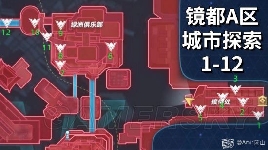 本次内容为镜都A区/城市探索/1-12,本次会探索12个。位置标记图如下。