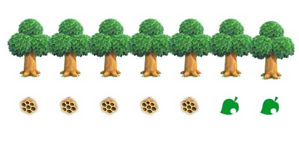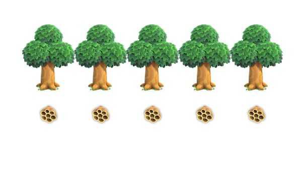 比如你知道这五颗树都有蜂巢的话,你不去摇它,它就会一直在上面,所以透过这个机制,我们只要避开5颗蜂巢树,只去摇那2颗家具树。