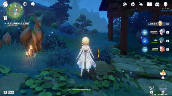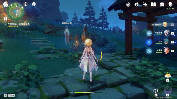 首先,我们来到神庙,会发现一个人在这里站着(上图),我们与她触发对话后,千万不要急着离开(看下图)