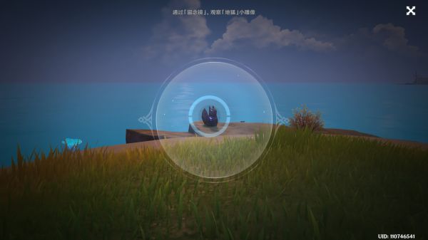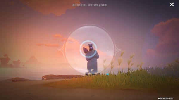 我们去远处,跟远处那个“人”对话后,果不其然,原先在狐狸雕像后的人,变成了宝箱。