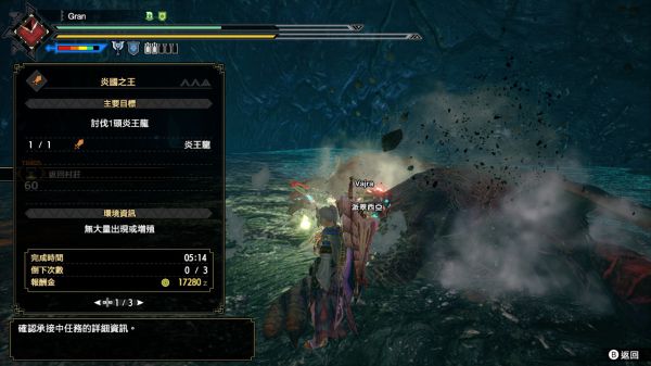 前面几只熟练后很好应付,而炎王是熟练后还是难得一逼。武器选择泡狐或迅龙,我是觉得泡狐表现好一点点。首先如果开局它在5那建议重置了别浪费时间,那地形特别难打,然后在14它又很喜欢先打小怪,车来车去到处飞扑…它的招式大多都是后摇很短,并且也不好虫反,比如左右喷火,这代居然是两段伤害...以往档一次就没了可以无视,还有起身喷火也是多段伤害,有些招式虽然可以接下但之后很可能被马上被击飞。