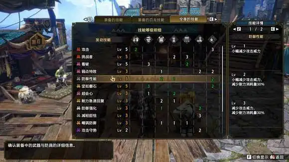 (2)三级的嘲讽防御只要怪物看你,就会有10级防御性能+5级回避性能,所以插了一颗佯动珠。一般开挂摸一下怪物就会发怒,挑战者和坚如磐石都会同时触发,触发挑战者后刚好满会心,如果选择其他武器可以相应的增减达人珠,插满坚如磐石直接拉满游戏体验。
