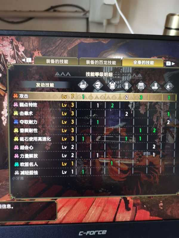 击晕术可以很好的在单刷时把怪物打出硬直(击晕),夺取耐力可以使怪物更快速的疲惫,在加上弱特3和笛子自带的30会心,加起来80(力量解放还可以提供20,但要触发才行),只要脸不黑还是可以打出会心伤害的