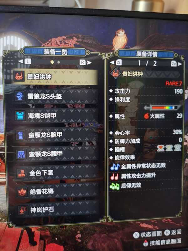 雷狼头 1夺气珠(可以考虑换炎王头,加15会心和1超心,但是需要卸掉别的2级孔换上一个弱特珠)