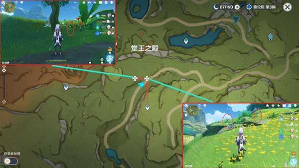 桓那兰那右方的传送,路线较长,能采集到较多的帕蒂莎兰。由于这条路线比较长,分为上下两段。其次就是保证自己不要在梦境中,下方第一个图片是区分现实和梦境的,在梦境中需要去洋葱头那里用大梦的曲调转换。我有跟跑视频,还有下半段记得换个雷系角色。