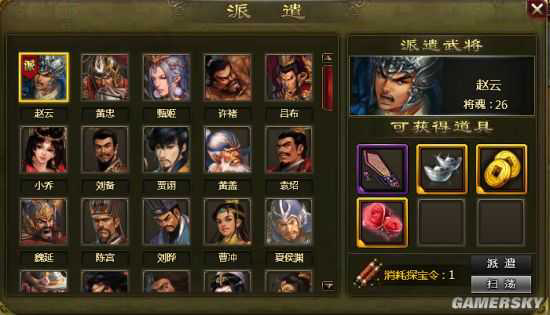 每次探宝花费20分钟!可派遣武将探宝!也可快速探宝!(扫荡)