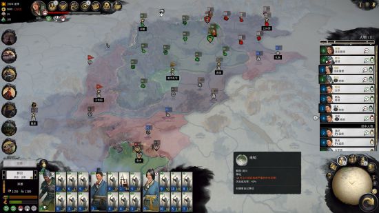 第一回合,先招揽荀彧,之后将从钱从队伍里分出来,一队分成两队去攻占第一座城池,一个掠夺撤退,一个占领(之后打的每一个城,全部如此)。然后让木将去差事,再与张燕达成贸易,最后我们将从钱的兵全部解散,将郑姜的斧兵也给解散,理由就是为了省钱,第一回合结束,身上4100钱,回合金1100左右。