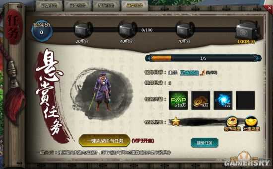 另外一个重头戏就是悬赏任务,在开启悬赏任务以后铜币刷到五星在接受任务,悬赏一共五次,经验也是大把大把的。