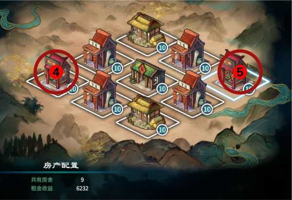 5.斜对角的铺子改建成农舍(可先改建一个农舍,优先改建附近是杂货铺的来保证持续性收益最大化)