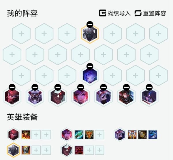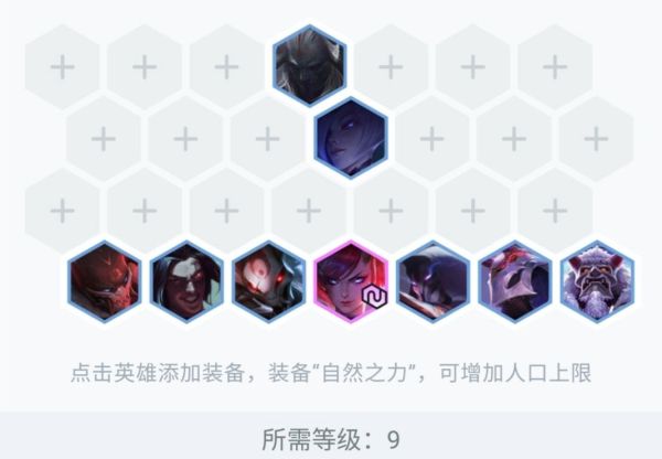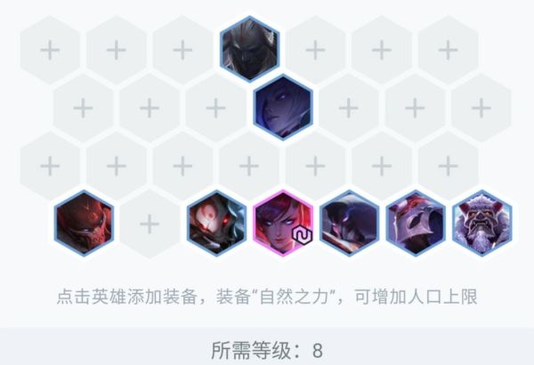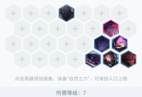 4-1拉7人口,7人口的思路就是提升加里奥的质量,因为改版以后每个场上的腥红之月英雄都能够提升加里奥的质量,因此我们在7人口只需要再补充一个剑魔支撑前排的坦度就足够了。