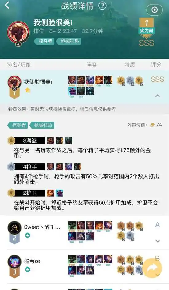 唯一烦的就是有时候打不过一些天胡德莱文(没合缴械刀) 建议大家还是看其他人的阵容,再针对性出特效刀。