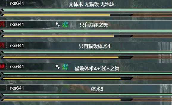 实际上泡沫之舞的耐力消耗减少和猫饭体术2一毛一样