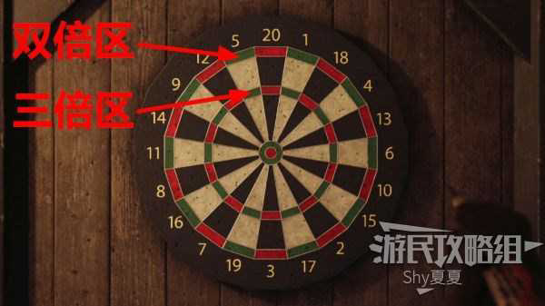 最外一圈靠近数字的红绿色区域为双倍区,如果是5就记10分。