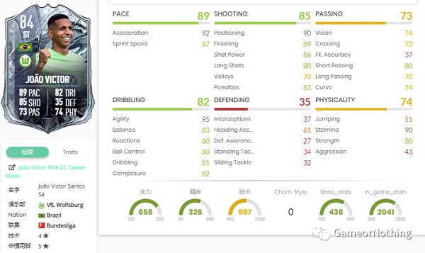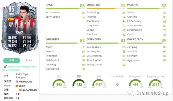 4花4逆,心态 H/M. 数值非常不错,速度快,射门好,跑位92. 传球也数值也很好。盘带所有数值84+. 推荐换位打CAM. 10万价格也还可以,谁还没点库存?