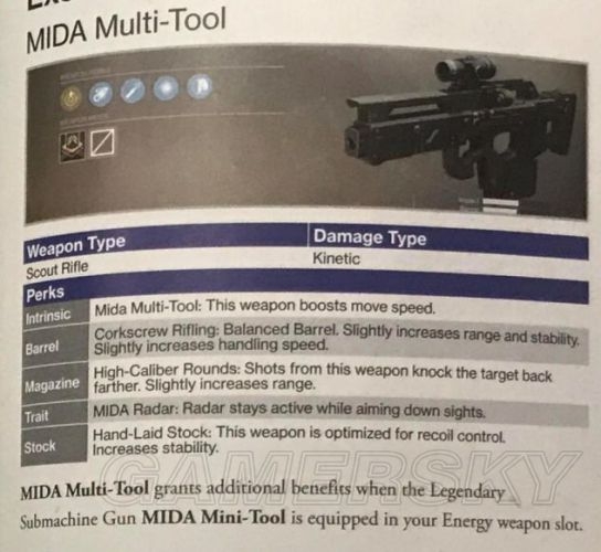 特殊搭配:同时装备MIDA Multi-Tool和紫色能量微型冲锋枪MIDA Mini-Tool的时候,可以获得额外好处。